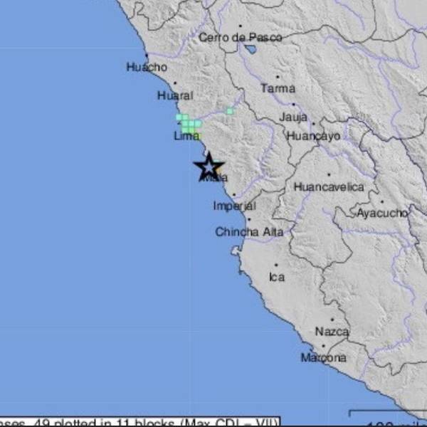 El temblor se registró a las 21.54 hora local y el epicentro se localizó en el océano Pacífico, 33 kilómetros al suroeste de la localidad costera de Mala, que está ubicada 91 kilómetros al sur de Lima.