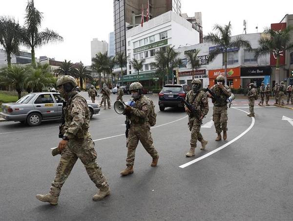 Militares caminan por las calles de Perú. Foto: Minuto 30.