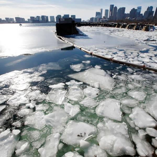 Gigantescas olas con pedazos de hielo inundaron parte del puerto de Boston, que espera hasta 45 cm de nieve, y dejaron algunos barcos varados en la calle. La televisión mostró imágenes de conductores tratando de controlar sus autos con el agua a media puerta.