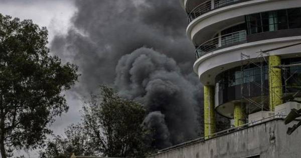 Sobre su origen, un soldado del Ejército de Kenia indicó que se debía a la inmolación de uno de los atacantes, que habría provocado un incendio que destrozó partes del techo de una de las plantas del centro comercial.