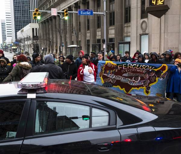 Un canal de televisión local, KMOV, reportó que decenas de indignados residentes confrontaron a la policía en el lugar, con gritos y eslóganes.