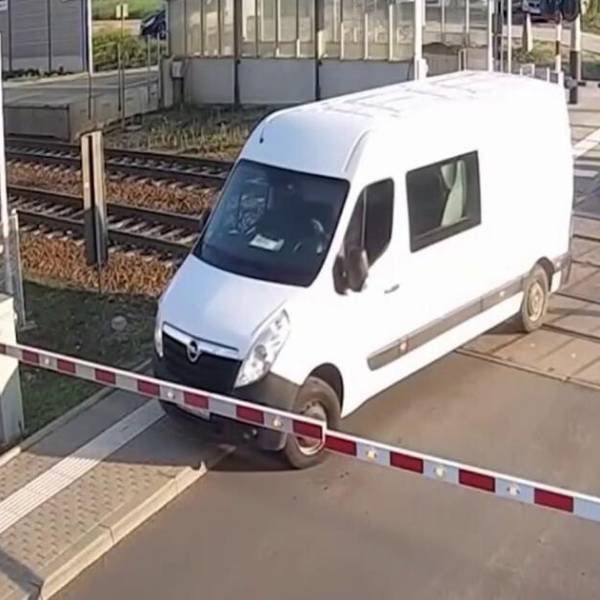 El suceso ocurrió en un paso a nivel en Polonia, cuando el conductor de una furgoneta blanca intentó cruzar las vías rápidamente para saltarse una luz roja. Sin embargo, quedó atrapado justo cuando las barreras de seguridad descendían, sin margen de maniobra.
