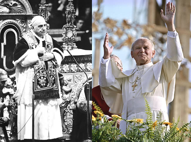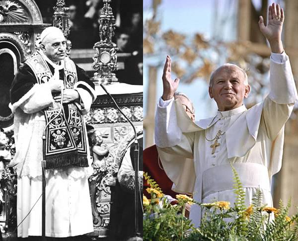 La santificación de Juan Pablo II y Juan XXIII se produce en el 50 aniversario de la apertura del Concilio Vaticano II, convocado por Roncalli, aquel papa del norte de Italia con aspecto de cura de pueblo que llegó a la Silla de Pedro cuando ya era muy mayor y todos lo consideraban un papa de "transición".