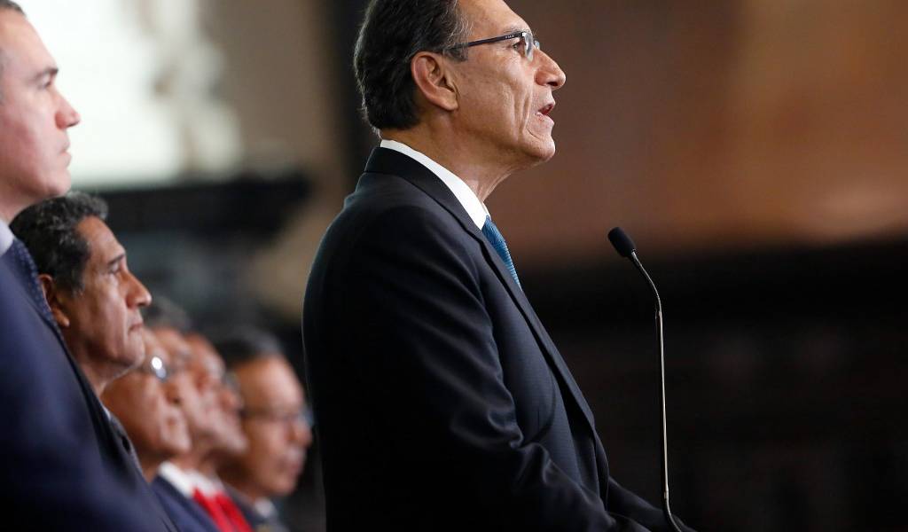 "No vamos a retroceder ni un solo paso para sacar adelante estas reformas tan necesarias para el país", agregó Vizcarra, quien apareció acompañado de su gabinete.