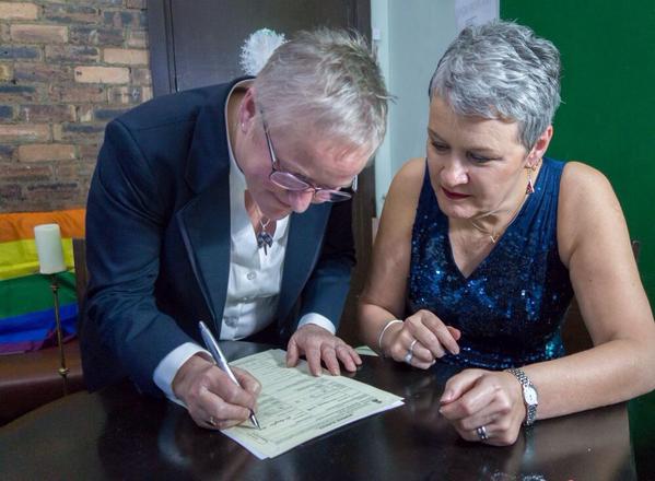 Otra pareja feliz, Susan Douglas-Scott, de 54 años, y Gerrie Douglas-Scott, de 59, se dieron el "sí quiero" con Nicola Sturgeon, primera ministra escocesa, como testigo.