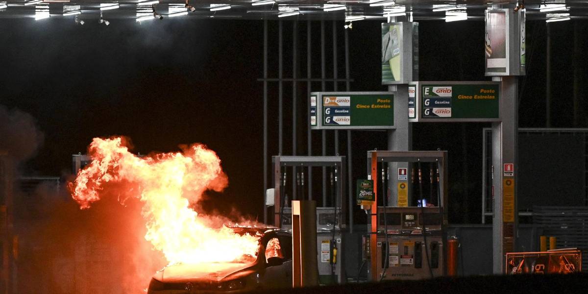 Los manifestantes, que vestían en su mayoría prendas de color amarillo y verde, que identifican a los seguidores de Bolsonaro, incendiaron un autobús urbano que circulaba por el centro de la capital y varios automóviles que estaban en el estacionamiento del edificio policial.