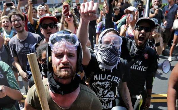 Miembros de Antifa protestando en Charlottesville en 2017.