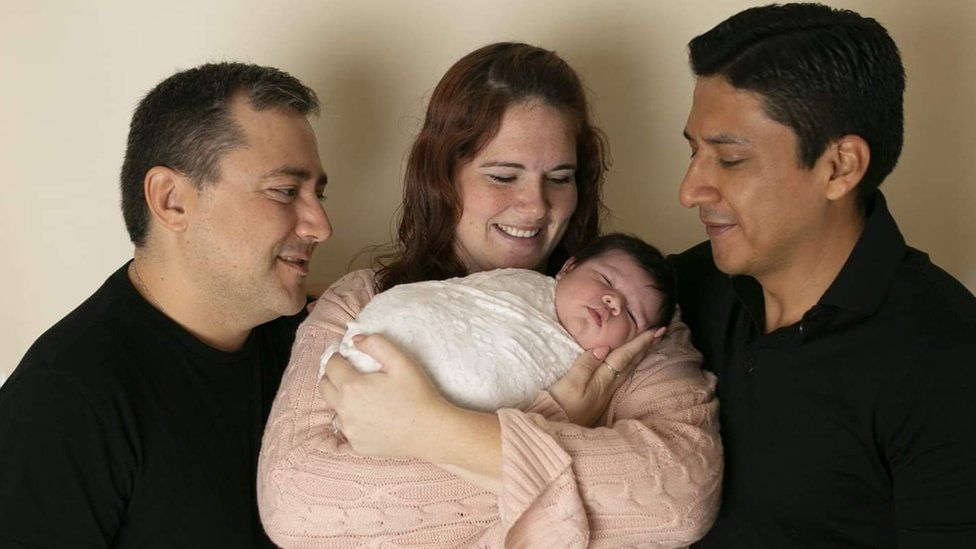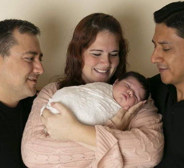 Marissa Muzzell dio a luz a Malena, hija del español Jesús (izquierda) y el mexicano Julio. Foto: JENNIFER JACQUOT
