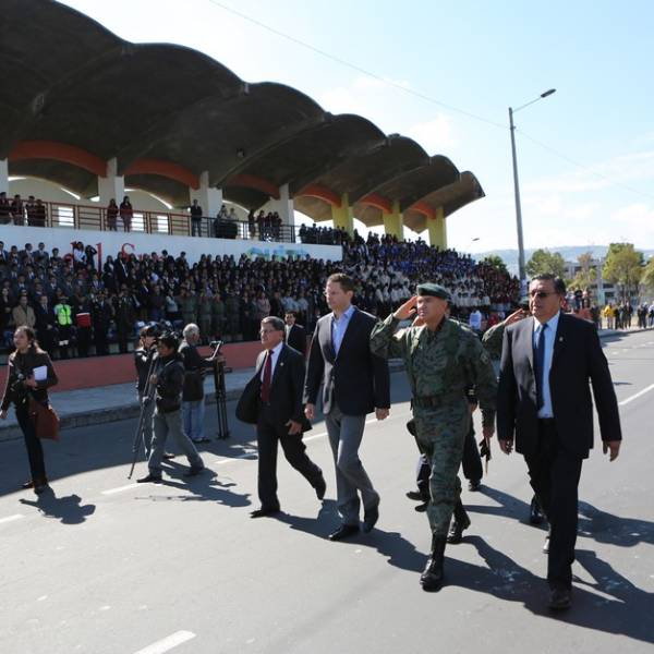 Los estudiantes de 14 instituciones educativas de la zona acudieron a este acto cívico, en donde participaron el alcalde Mauricio Rodas; el general de Brigada Gustavo Cabrera, el comandante De La I. D. E Shyris; Mario Granda, concejal del Distrito Metropolitano de Quito, y el administrador Zonal Eloy Alfaro, Marco Vinueza. Además de los comandantes de Unidad del Fuerte Militar Epiclachima, comandantes, jefes de la Policía Nacional, Policía Metropolitana de Quito, Bomberos, Oficiales Superiores y los delegados del Distrito de Educación Circuito 6.
