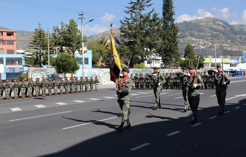 La ceremonia constó de los Honores y parte de inicio al general de Brigada Gustavo Cabrera Campuzano, comandante de la Primera División de Ejército Shyris, el Ingreso del Estandarte Nacional. Un estudiante del colegio Juan Pío Montufar realizó una exaltación al Escudo Nacional.