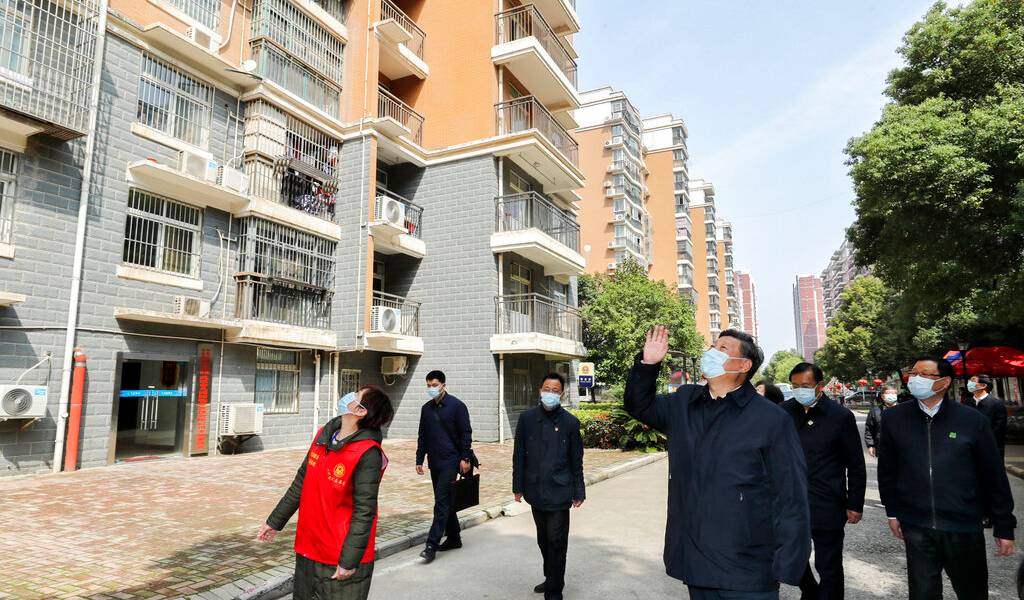 El presidente chino Xi Jinping (en primer plano) durante un recorrido por Wuhan. Foto: Xinhua