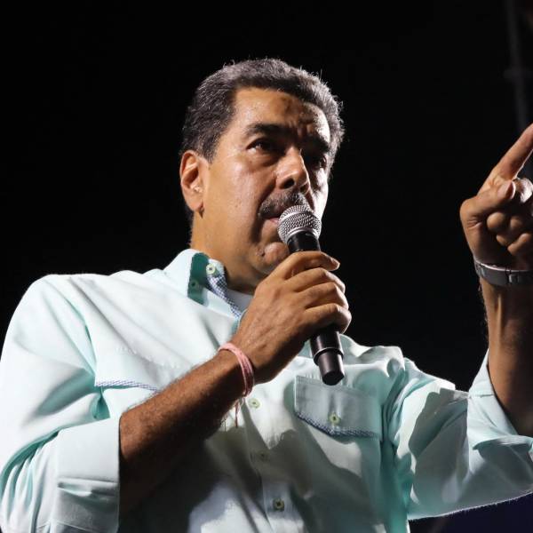 Esta imagen proporcionada por la Presidencia de Venezuela muestra al presidente venezolano Nicolás Maduro hablando durante un mitin, dos meses después de las controvertidas elecciones presidenciales, en La Guaira, Venezuela, el 28 de septiembre de 2024.( )