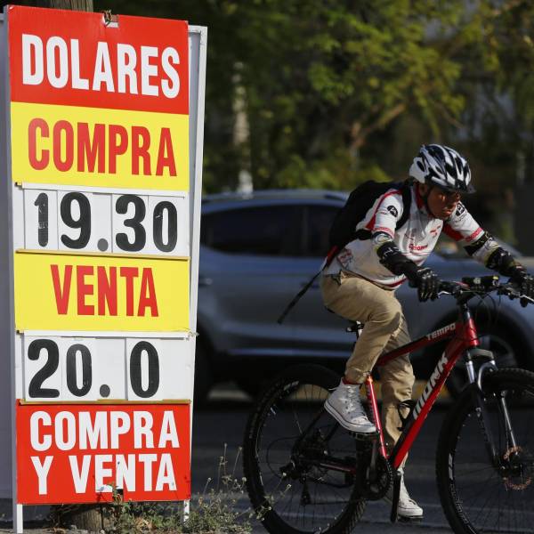 Una persona pasa frente a una casa de cambio este lunes, en la ciudad de Guadalajara, en Jalisco (México).( )