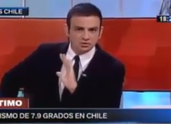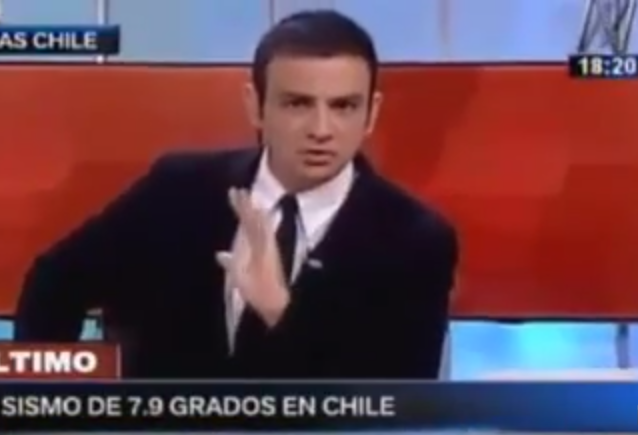 Una de las réplicas que provocó el terremoto de 8.4 grados de magnitud quedó grabado en el momento en que dos presentadores informaban sobre la alerta del tsumani.