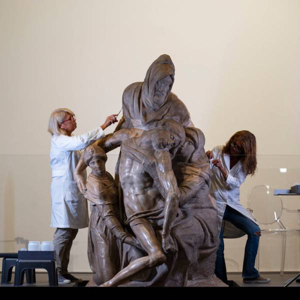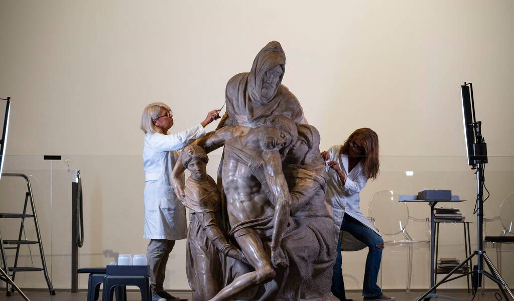 El Museo dell’Opera del Duomo en Florencia dijo el miércoles que la limpieza de la “Piedad florentina” (también llamada “Piedad Bandini”), que comenzó el año pasado, pero se suspendió debido a la pandemia del coronavirus, fue reanudada y que el público ahora puede acudir en grupos pequeños a ver a los restauradores trabajando.