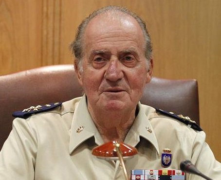 El rey Juan Carlos de España sufrió una caida frontal al tropezar con un escalón luego de saludar a los asistentes a una visita en el Ministerio de Defensa.