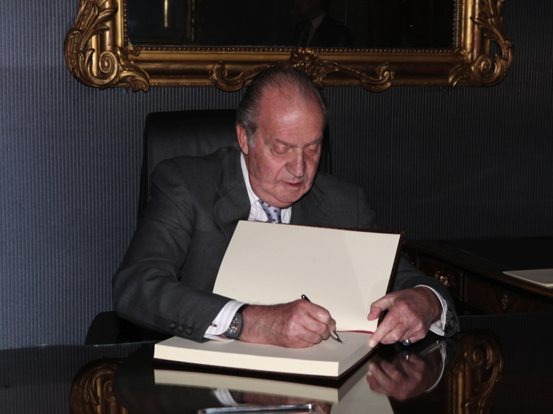 El rey Juan Carlos firma hoy la ley de su propia abdicación en una ceremonia solemne, en lo que será su último acto como jefe de Estado español y de sus 39 años de reinado.