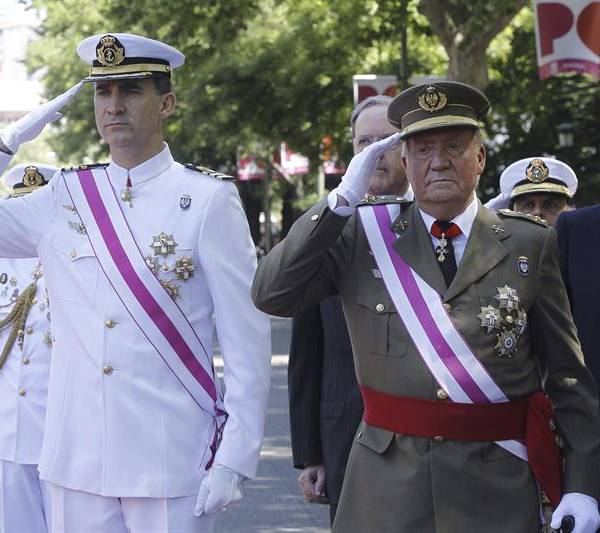 ESPAÑA.- Según el ministro de Defensa español, el rey Juan Carlos (d) tendrá el mismo tratamiento que cualquier militar en reserva. Foto: EFE