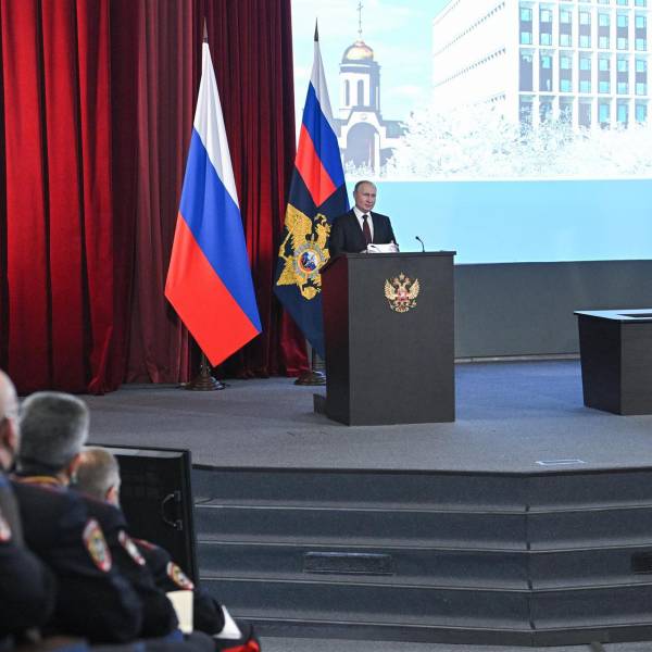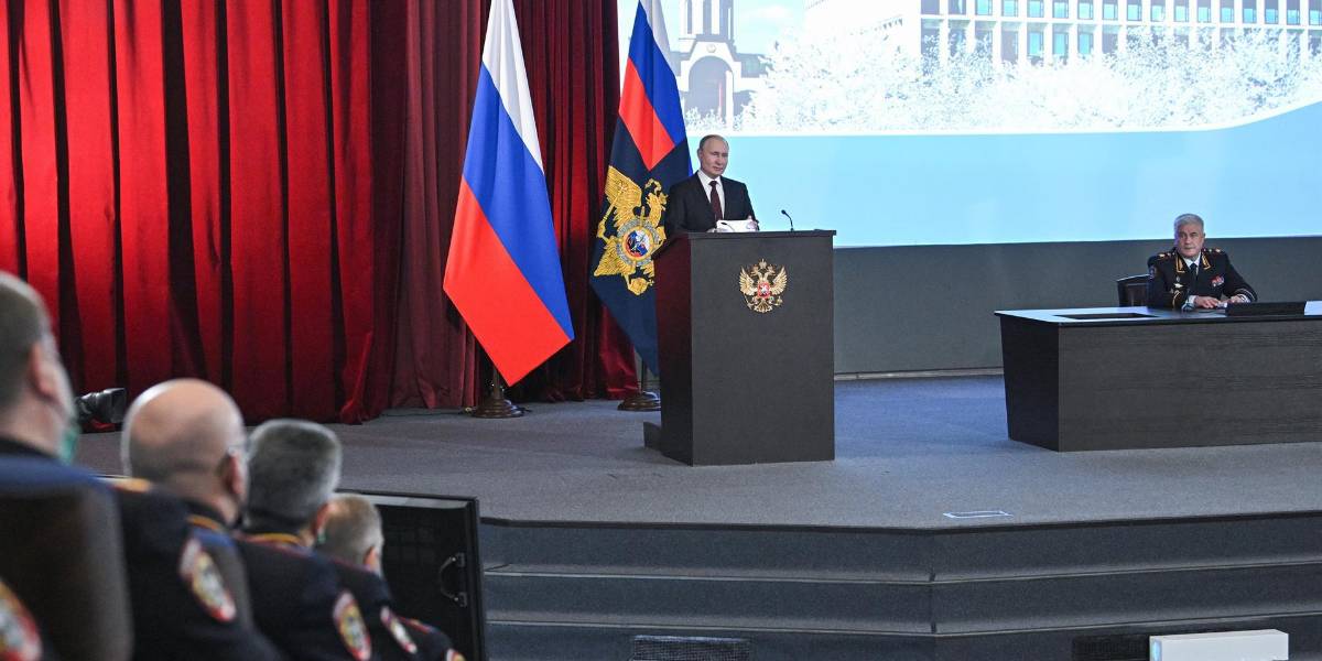 Vladimir Putin habla en la sede del Ministerio del Interior ruso.( )