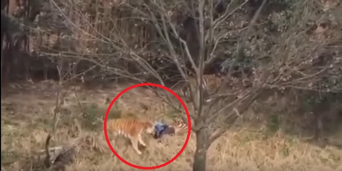 Minutos después, trabajadores del zoológico llegaron al lugar e intentaron ahuyentar a los animales con petardos, sin embargo, el tigre que sostenía al hombre con sus dientes no lo soltó y se internó en la arboleda.