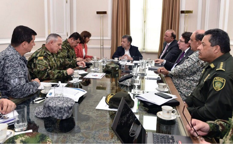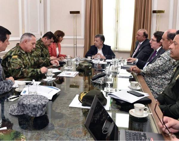 "Desde las 08H00, el presidente Santos se encuentra reunido con la canciller, el ministro de Defensa, y la Cúpula Militar revisando la información recibida sobre la supuesta presencia de militares venezolanos en Arauca", informó la oficina de prensa de la Presidencia.