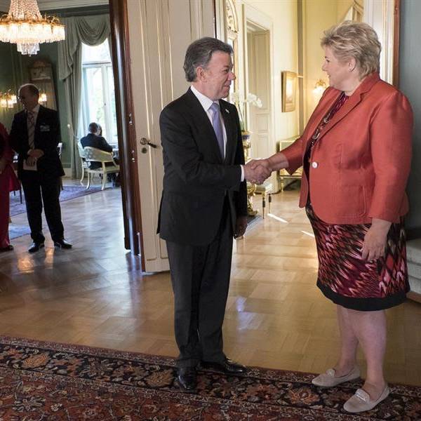 Santos mantuvo encuentros con varios líderes políticos noruegos, incluida la primera ministra, Erna Solberg, y abrió el Oslo Forum, una mesa redonda sobre mediación y solución de conflictos que organiza cada año el Ministerio de Exteriores de este país nórdico.
