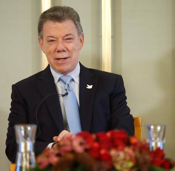 El presidente de Colombia, Juan Manuel Santos, afirmó desde Oslo que la concesión del Nobel de la Paz, que recibirá este 10 de diciembre de 2016 en el ayuntamiento de la capital noruega, fue "un regalo caído del cielo" y "un impulso tremendo" para las conversaciones con la guerrilla de las FARC.
