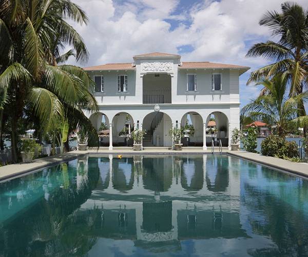 Toda la villa está pintada de blanco y la rodea un frondoso jardín de plantas tropicales que ha conservado su diseño original.