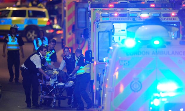 Los tres atacantes, armados con cuchillos, y vestidos con chalecos explosivos falsos para sembrar el pánico, empezaron entonces a acuchillar a peatones y a clientes de los bares de Borough Market.
