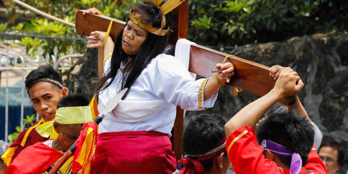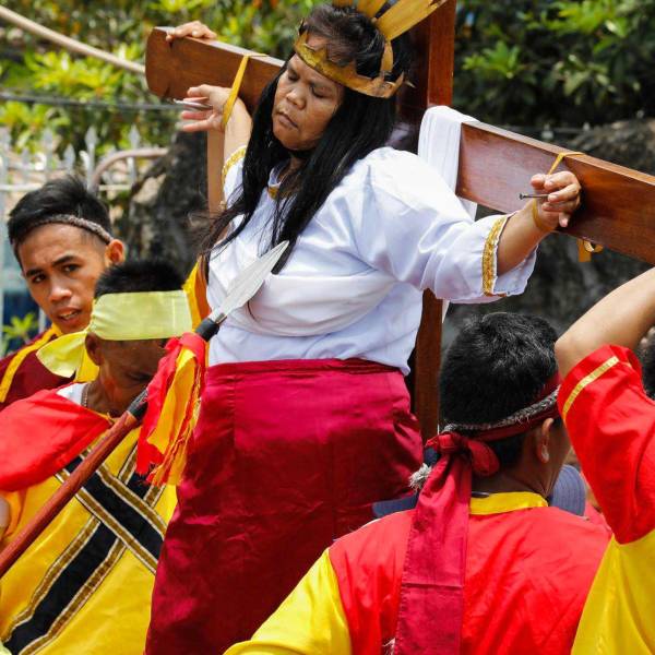 Mientras que buena parte de los católicos filipinos celebran la Semana Santa visitando iglesias y viendo procesiones, algunas aldeas ponen en escena espectáculos sangrientos que incluyen flagelantes que se azotan con látigos y crucifixiones, a pesar del rechazo por parte de Iglesia a estas tradiciones.