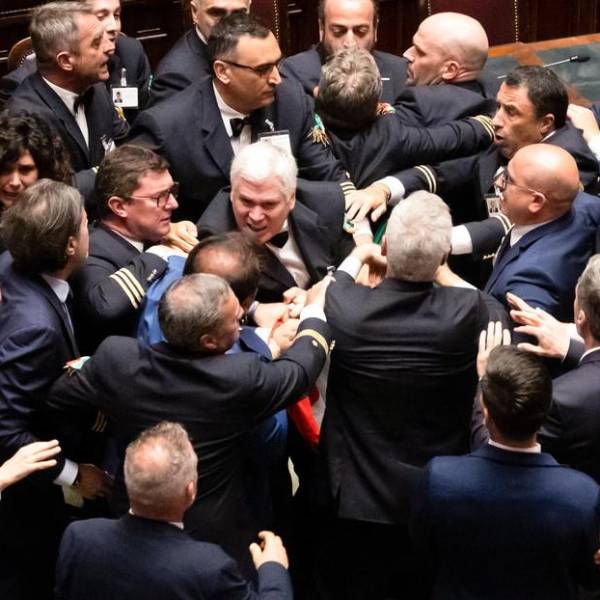 Este gesto, que pretendía denunciar el debilitamiento de la unidad del país, provocó el enojo de los diputados de la Liga, el partido de ultraderecha de Matteo Salvini. Todos abandonaron sus curules y bajaron al hemiciclo para echarse encima de Donno.