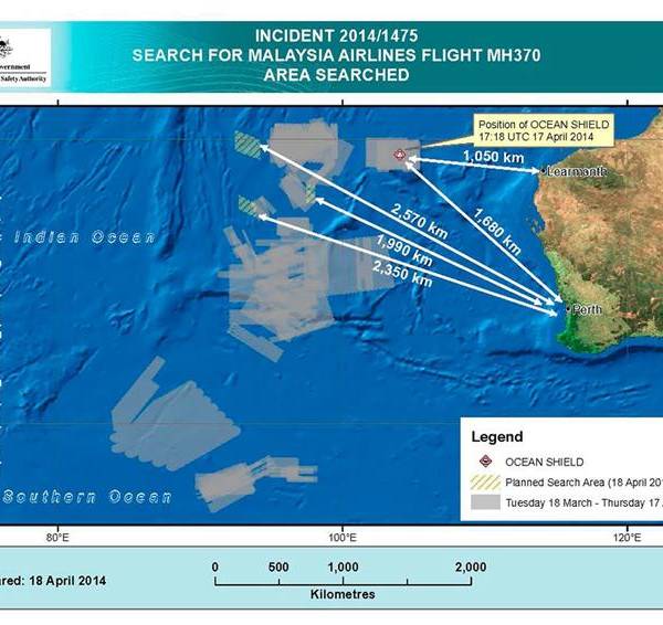 Además durante esta jornada, once aviones militares y doce buques rastrean una zona que se amplió hasta los 51,870 kilómetros cuadrados, divididas en tres áreas y a unos 2.170 kilómetros al noroeste de Perth, en misiones de rastreo visual, en busca de partes del fuselaje del avión.