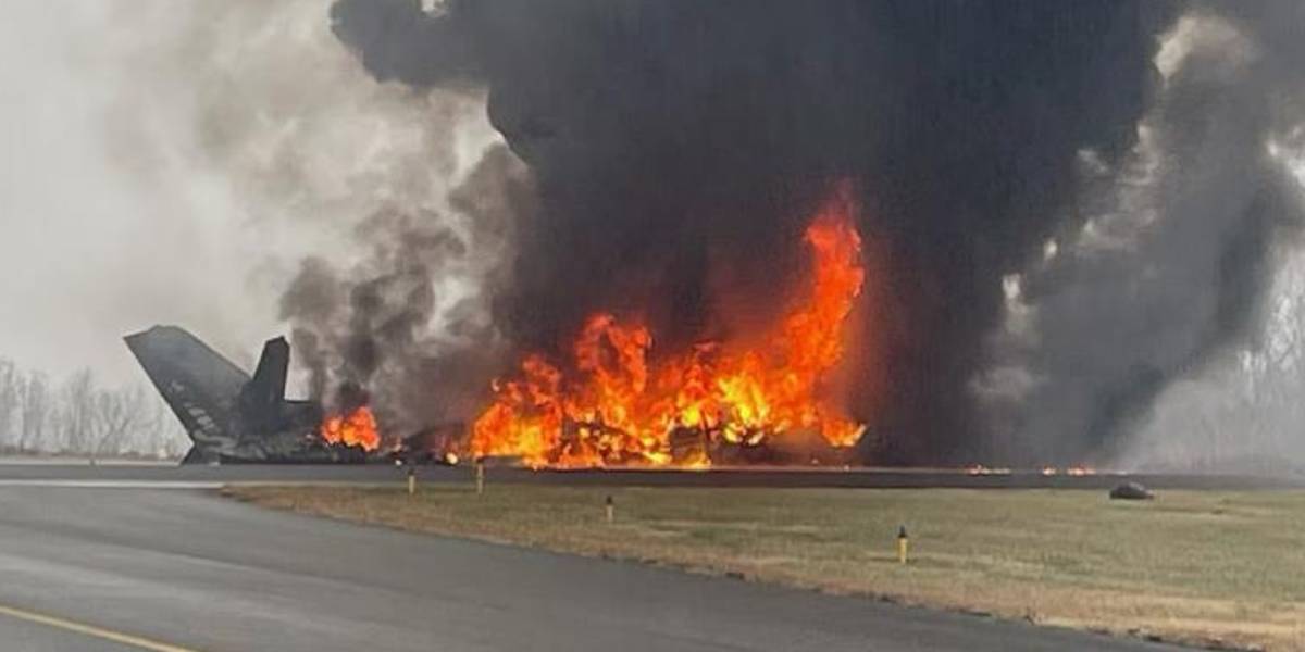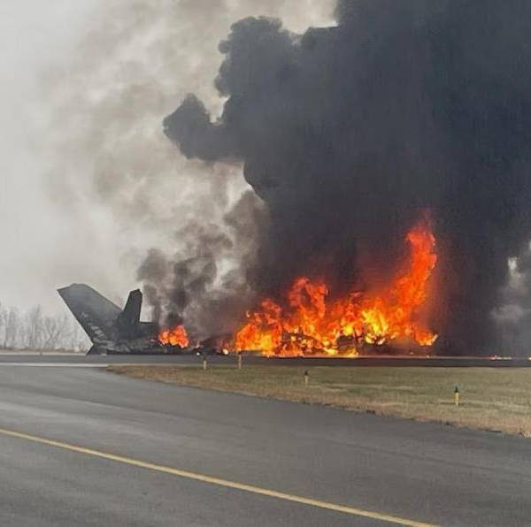 Imágenes difundidas desde el aeropuerto muestran a la aeronave envuelta en una gran bola de fuego tras el impacto.