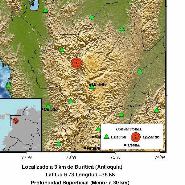 El segundo movimiento telúrico se registró horas más tarde, a las 13:52 del domingo. Este ocurrió en el Municipio de Buritacá, también en Antioquia, pero tuvo una magnitud menor: 2.5. También tuvo una profundidad superficial.