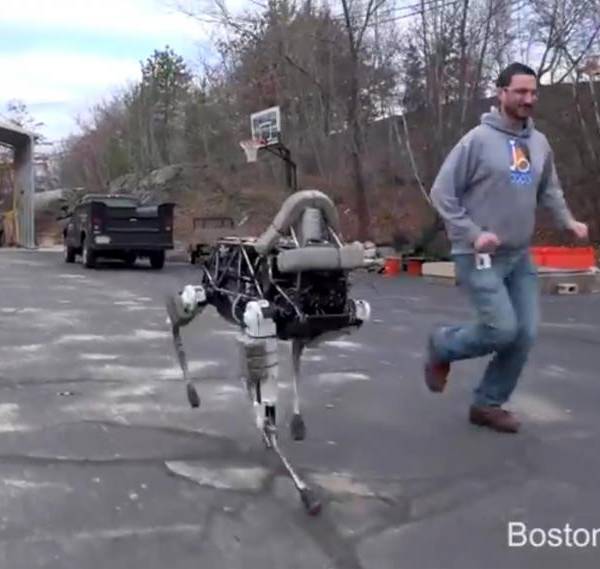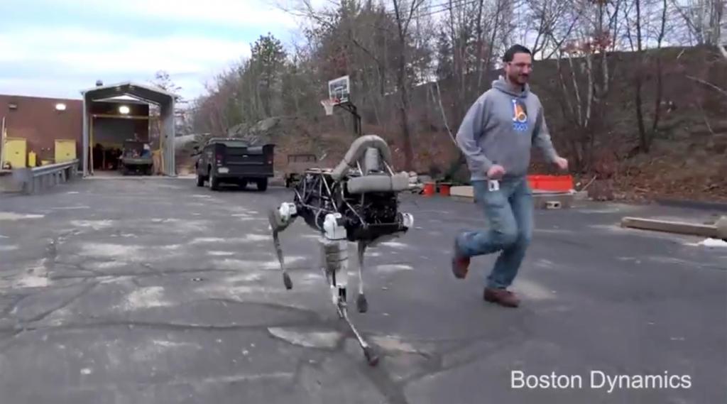 Spot es un robot diseñado por la compañis Boston Dynamics para cumplir misiones de guerra. Esta empresa fue adquirida por Google en 2013.