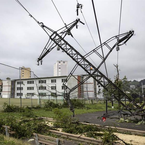 Una torre de electricidad de alto voltaje caída después de que un tornado azotó la ciudad de La Chaux-de-Fonds, Suiza.( )