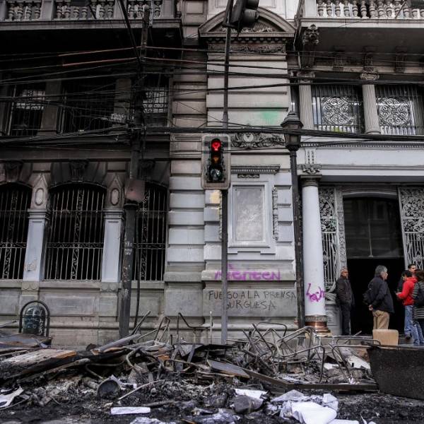 En Santiago, un toque de queda quedó en efecto entre las 01H00 GMT del domingo y las las 10H00 GMT, en respuesta a "los desmanes que han ocurrido el día de hoy", dijo el general encargado de la seguridad capitalina, Javier Iturriaga.