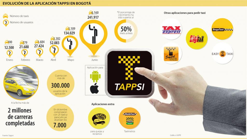 Con más de 1,5 millones de descargas y después de transportar a más de ocho millones de personas en 2013, Tappsi es una de las aplicaciones para pedir taxi más usadas en Colombia.