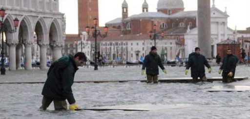 El fenómeno del "agua alta" en Venecia, la subida de las mareas, alcanzó en las últimas horas los 125 centímetros y anegó un 30 % de la superficie de la ciudad, según informaron hoy los medios de comunicación italianos.