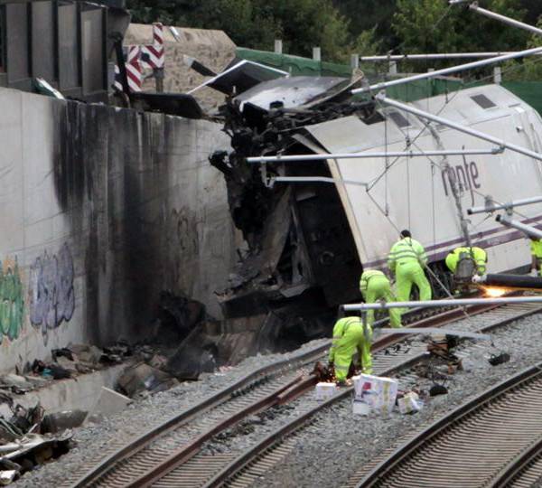 Operarios continúan trabajando en la curva donde descarriló el tren Alvia