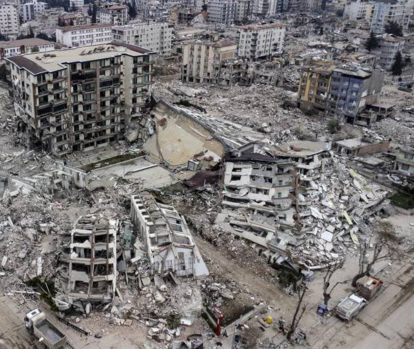 Hatay, Turquía.- Imagen aérea del 21 de febrero que muestra una vista de los edificios derrumbados.( )