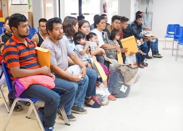 En un bus, llegan 30 mexicanos y centroamericanos con sus niños. Los bebés lloran. Los adultos tienen la sonrisa difícil, la expresión cansada y un grillete con GPS en el tobillo.