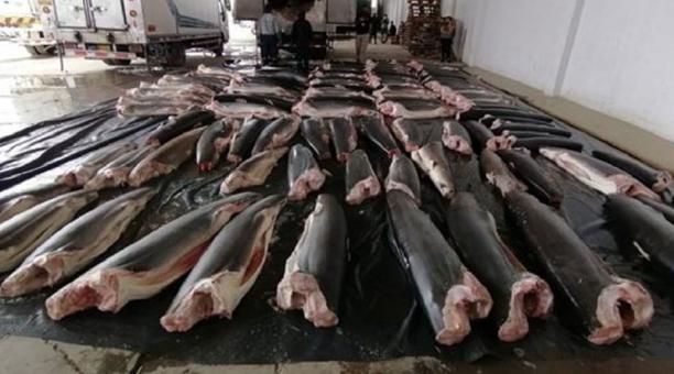 Carne de tiburón decomisada en Perú y procedente de Ecuador. Foto: Archivo