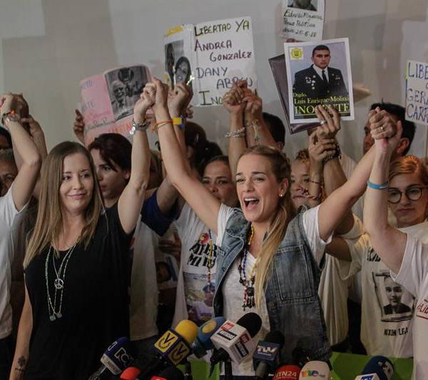 "Nosotros, los familiares de los presos, estamos esperando la libertad", afirmó la esposa del fundador del partido Voluntad Popular.