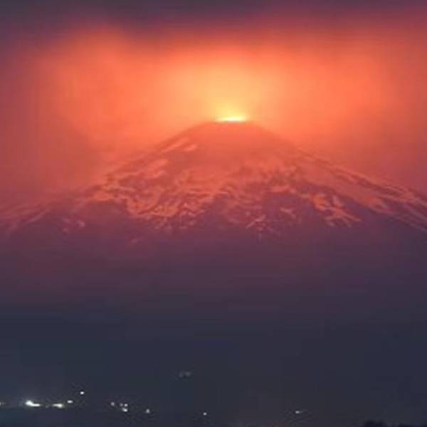 Aunque puede parecer ominosa, la tormenta eléctrica sobre el volcán Villarrica en Chile generó vistas espectaculares.