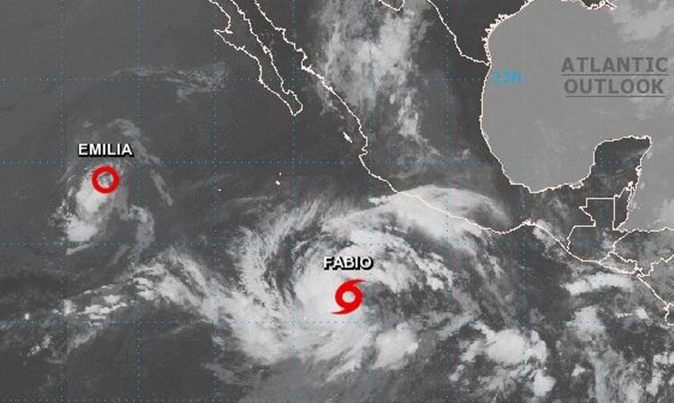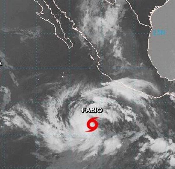 El Centro Nacional de Huracanes en Estados Unidos informó que el lunes al mediodía Fabio tenía vientos de 120 kilómetros por hora (75 millas). Su vórtice estaba a unos 1.125 km (700 millas) al sur del extremo sur de la península de Baja California y se movía hacia el oeste a 15 km por hora (9 millas).
