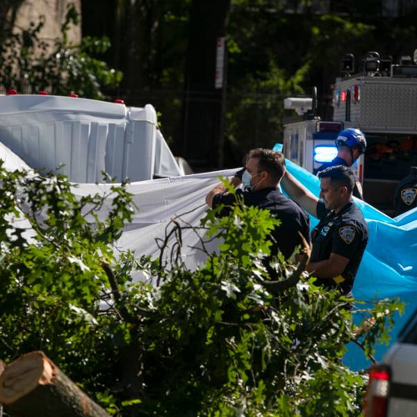 Policías de la ciudad de Nueva York cubren a una persona que murió tras el paso de Isaías. Foto: AP