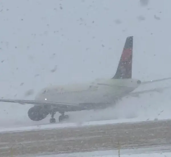 Fuertes tormentas de nieve en Estados Unidos afectando el aterrizaje de un vuelo. ( )