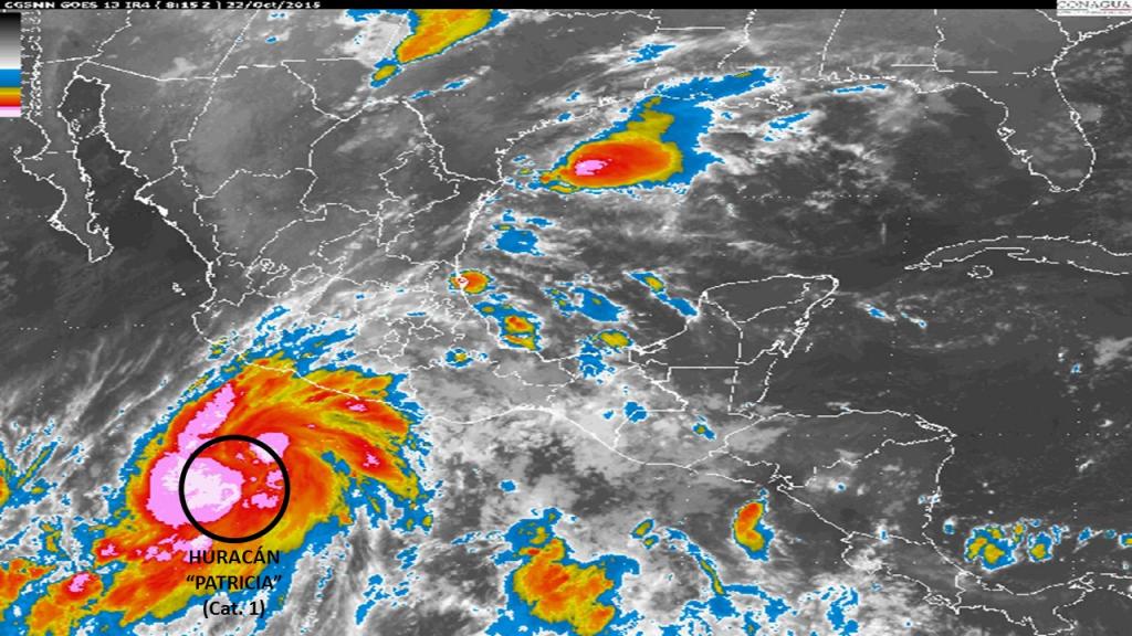 Para del viernes se pronostica que Patricia sea un huracán de categoría 3, con vientos sostenidos de 185 kilómetros por hora y rachas de 220, y se ubique a 210 kilómetros al suroeste de Punta San Telmo.