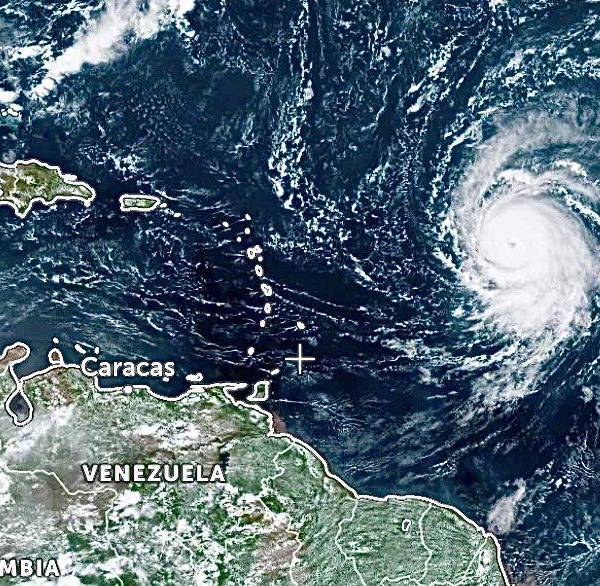 Los vientos con fuerza de huracán se extienden hasta 30 millas (45 km) del centro. Por el momento no se han emitido vigilancias ni avisos costeros, pero las Antillas Menores deben vigilar la marcha del sistema.